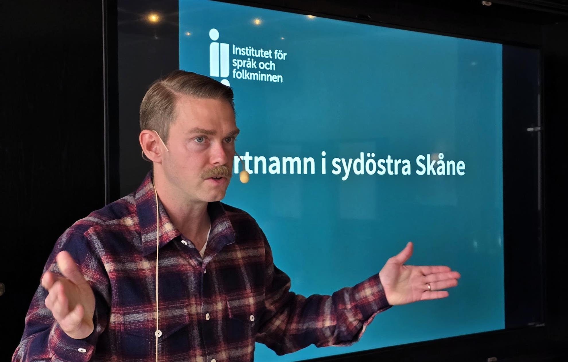 Till Mathias Strandberg på Institutet för språk och folkminnen, som med hög röst och lugn framtoning invigde oss i olika aspekter kring ortsnamn. Själv är han bördig från Olseröd, mellan Degerberga och Brösarp och hamnar därmed mellan två stora huvudtyper av skånska dialekter. För övrigt nära backen ner mot Kristianstadslätten där något ljushuvud lyckats sätta upp en fartkamera.